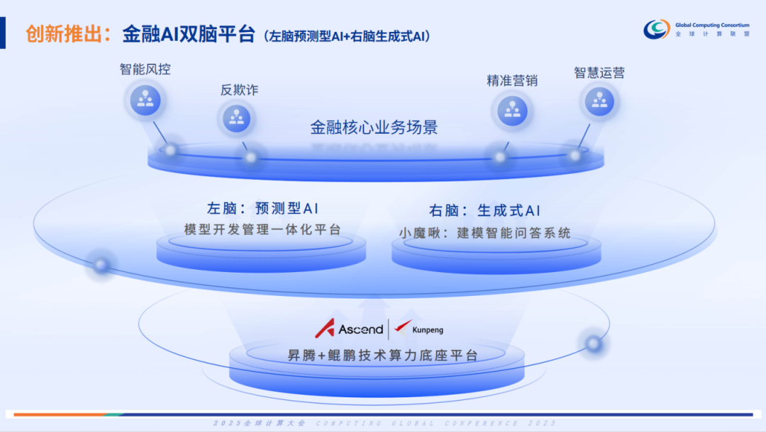 近日,由全球计算联盟(GCC)主办的“2025全球计算大会(CGC2025)”在深圳盛大召开,本次峰会以“筑新基·赋新能,拥抱AI新机遇”为主题,汇聚了包括6位中外院士、40余位产业专家在内的千余名行业精英。魔数智擎市场部副总经理陆玉华受邀出席,并在“智能计算”论坛发表重要演讲,分享了公司在智能计算技术与金融业务深度融合方面的最新实践——“AI双脑协同”架构。